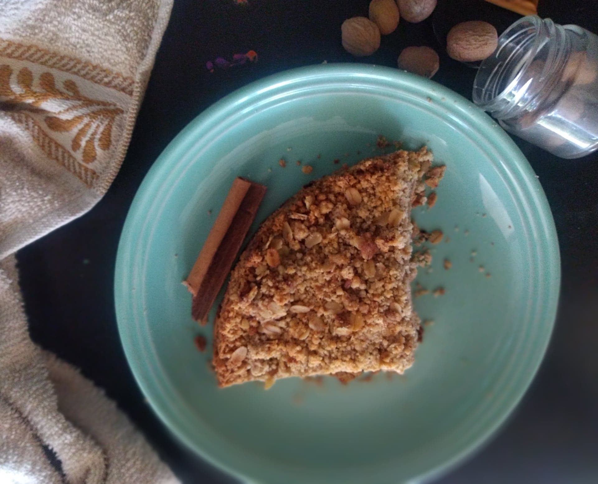 El horneado, ten mucho cuidado revisa constantemente. Estará listo cuando la superficie este en un tono dorado. Incluso la avena que queda de fuera también consigue cambiar de tono.