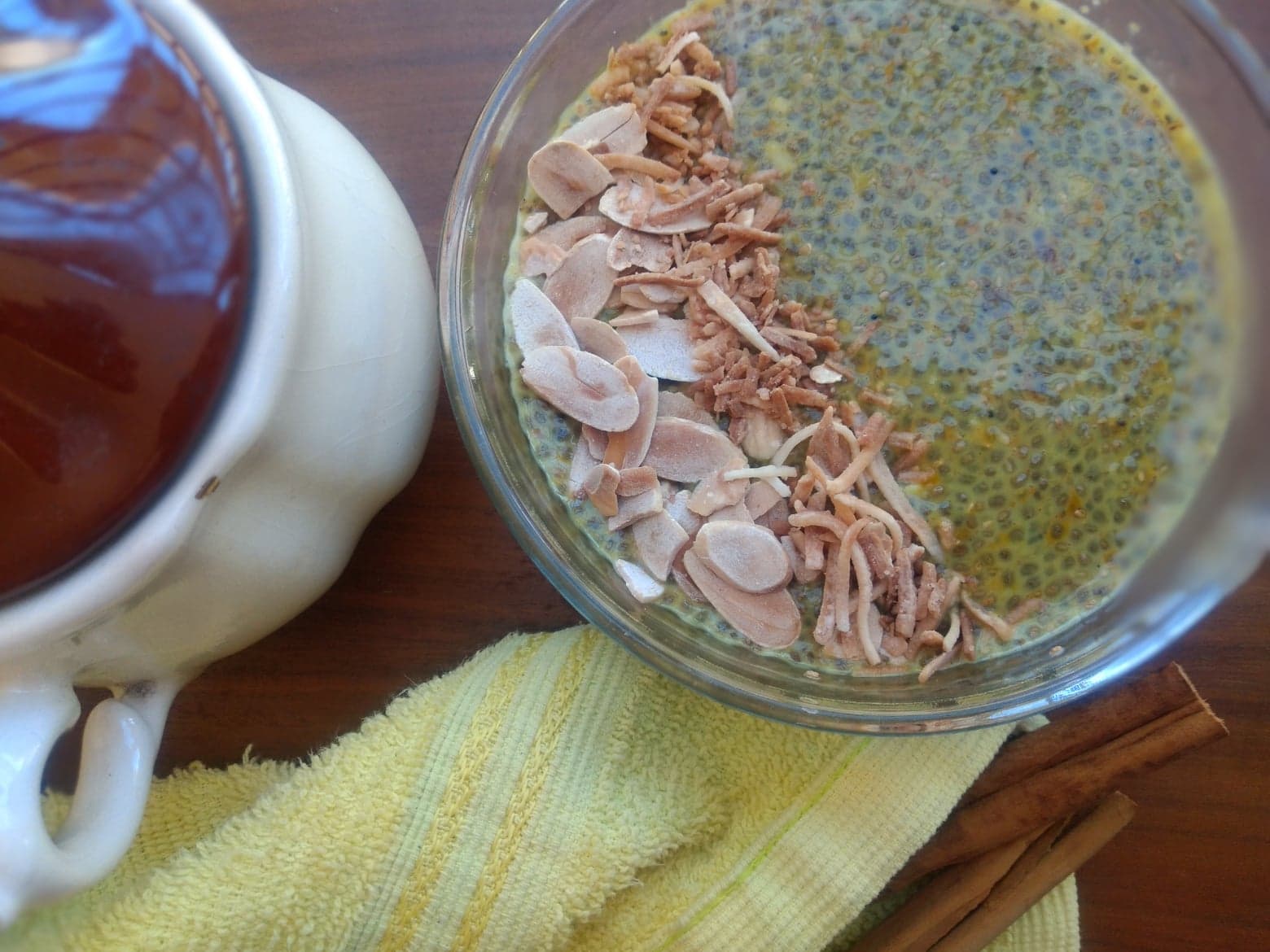 Como ya te había contado también, mi querido lector, me han pedido que haga un pudin de chía, petición del Chef Andrés Zúñiga y pues sumando el que solo estoy comiendo cosas lo más liquidas posibles, me he puesto creativo e hice este Pudin De Chía Dorado. La cúrcuma le da esa tonalidad de amarillo brillante, el sabor de la canela y la almendra y el coco tostados… para que te cuento. Pruébalo y veras que no solo lo hice por estar medicado, es increíble.